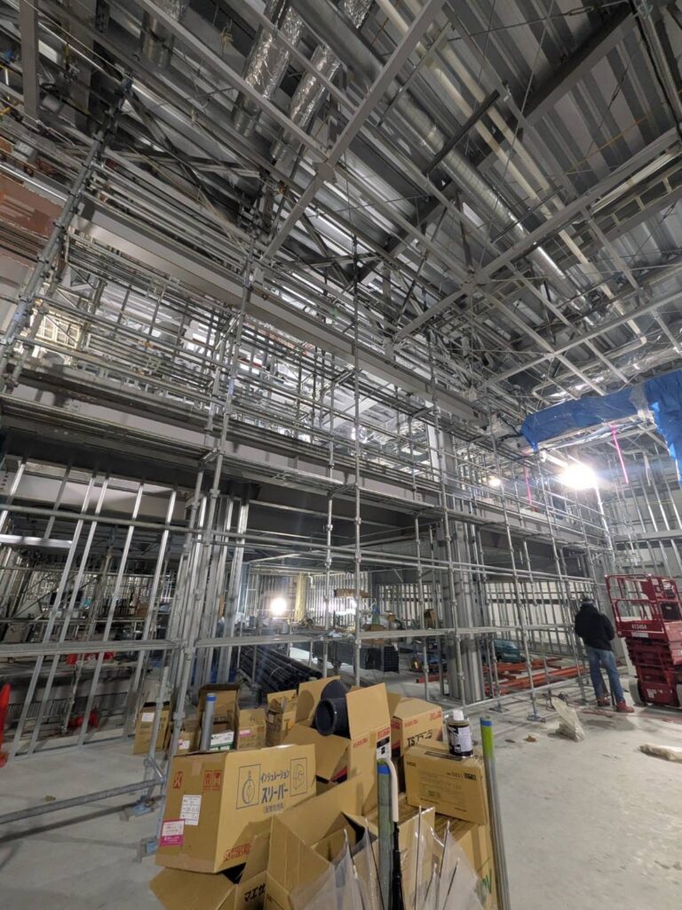 富山県入善町にて、工場内設備工事に伴う内部足場の組立を行いました。