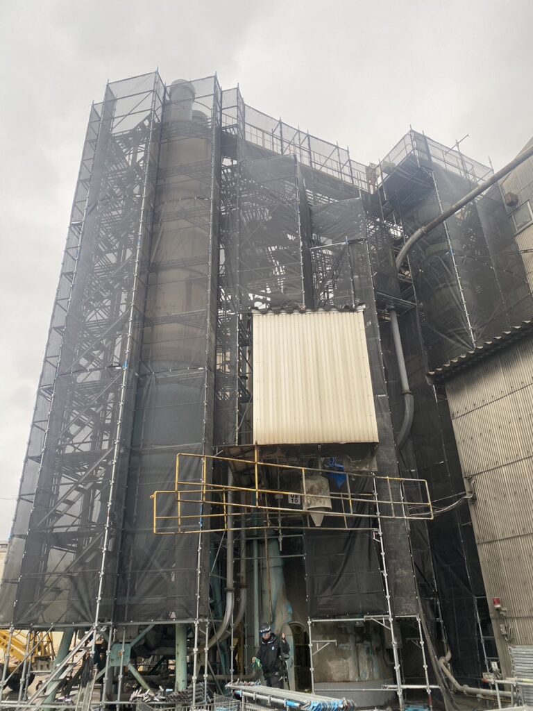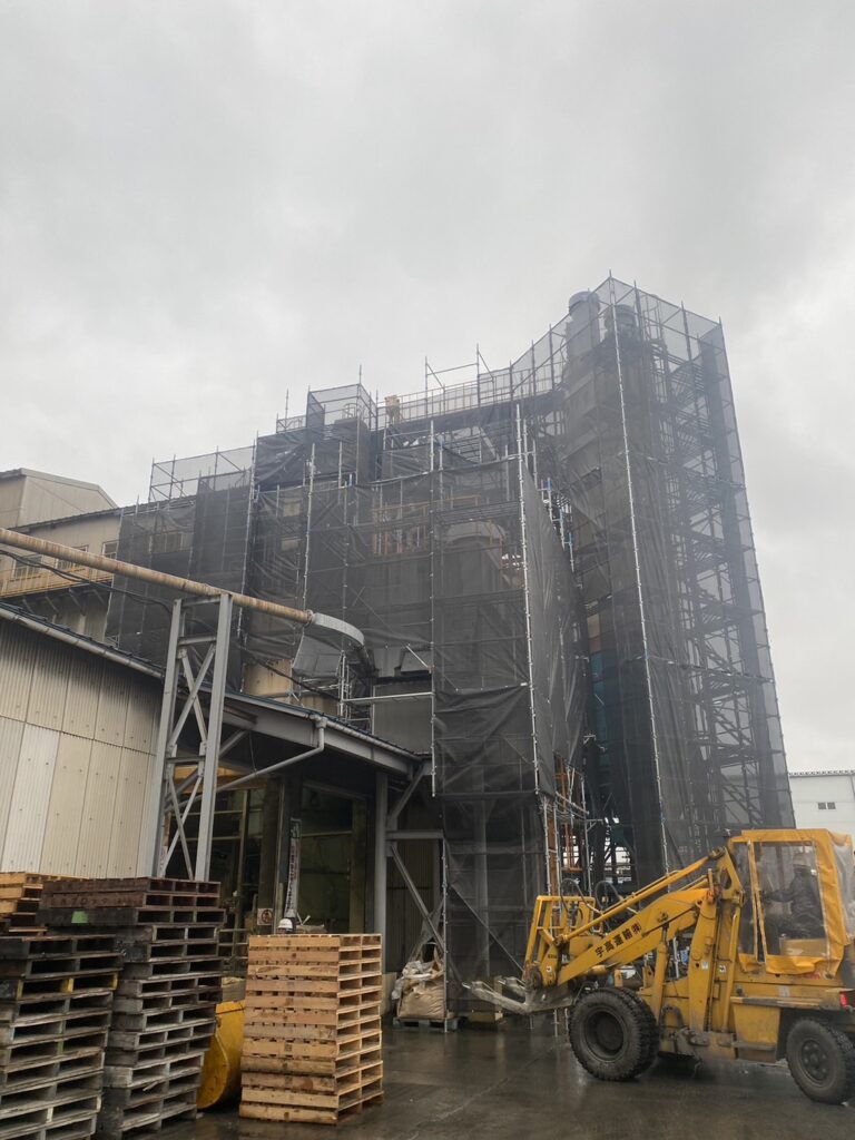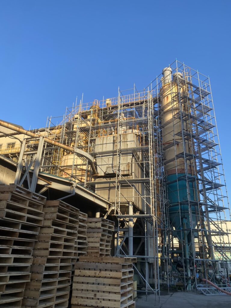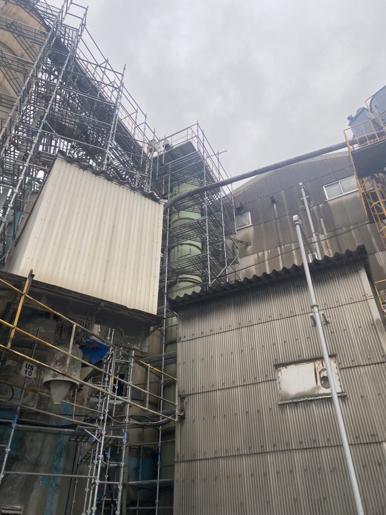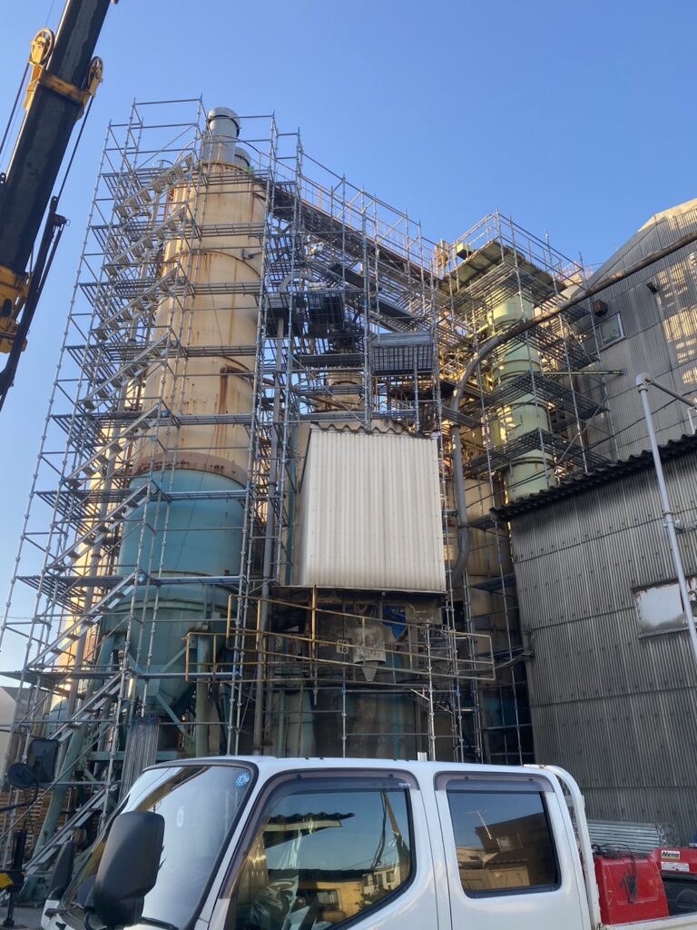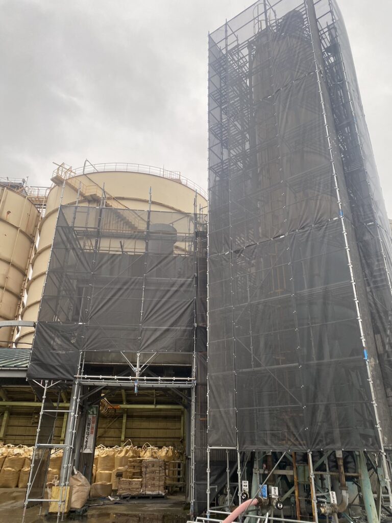 富山県射水市内の工場タンクの周りに塗装用足場を組立致しました。