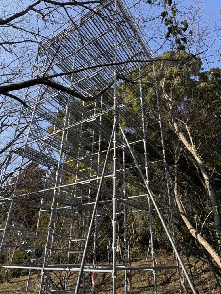 最上部には広めの作業床を確保し、安全に調査できる足場を組立しました。