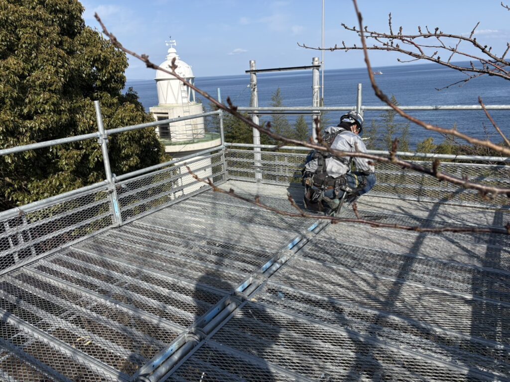 石川県七尾市にて、海沿いの高台にある灯台調査のため、調査用ステージ足場を設置しました。
