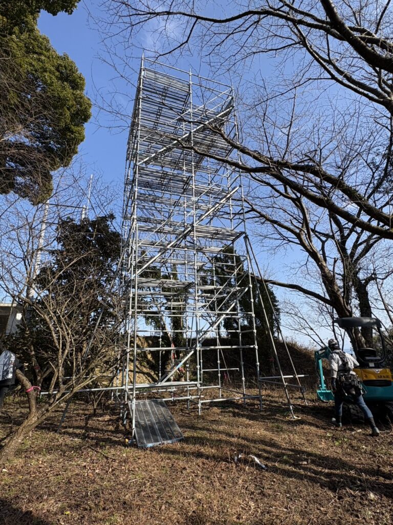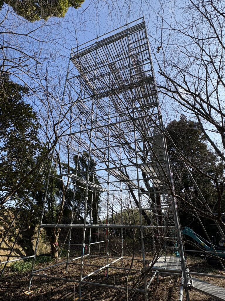 最上部には広めの作業床を確保し、安全に調査できる足場を組立しました。
