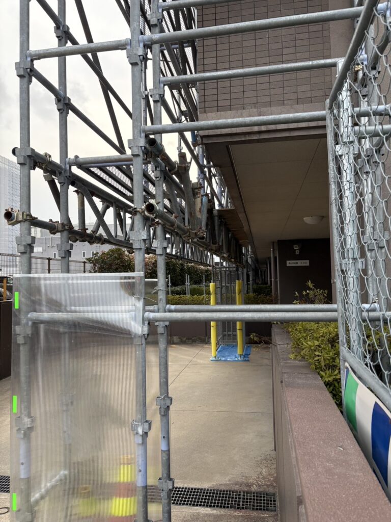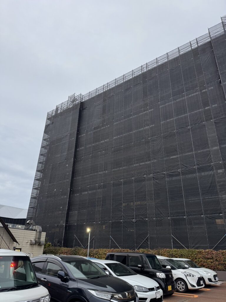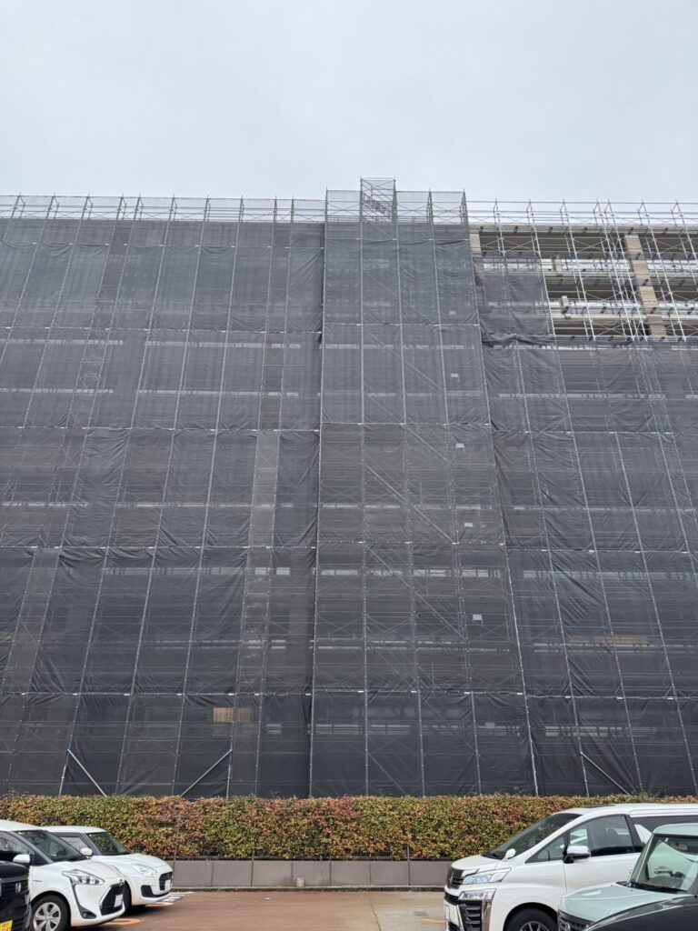 石川県小松市にて、マンション大規模改修工事の足場組立進捗状況になります。
