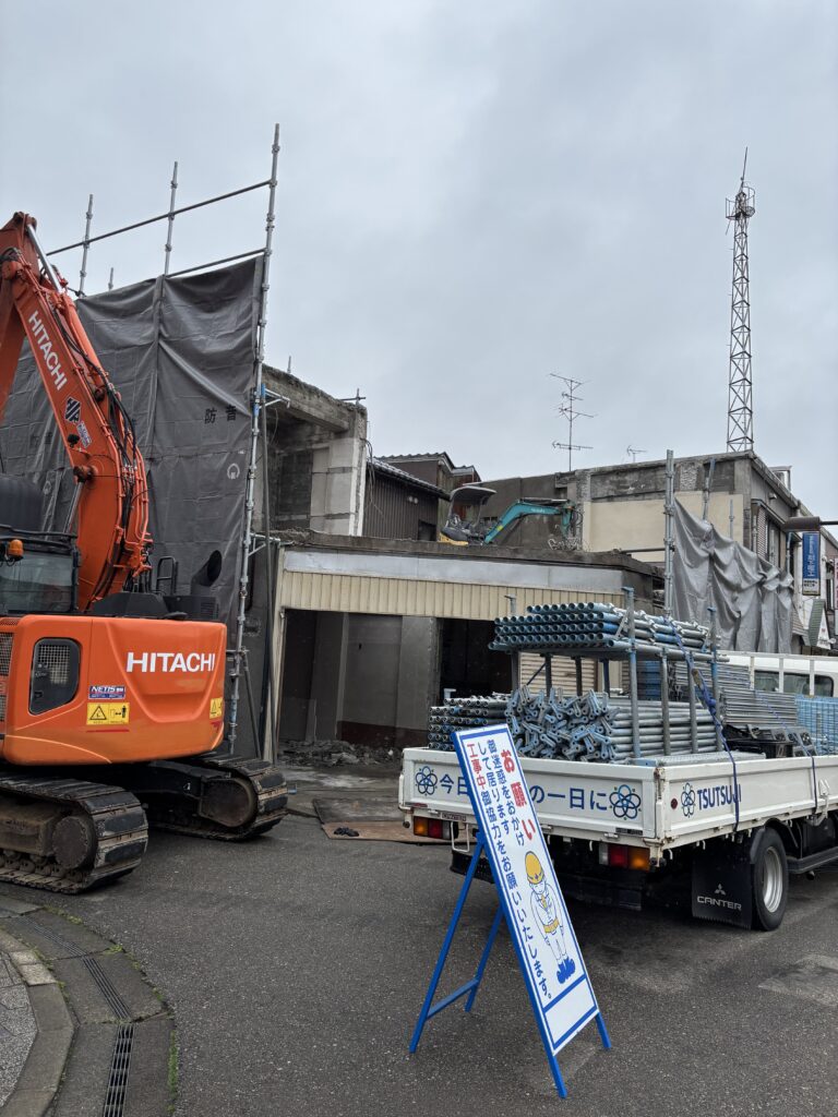 石川県小松市内にて先日組立しました解体養生用足場の相番作業を行いました✨