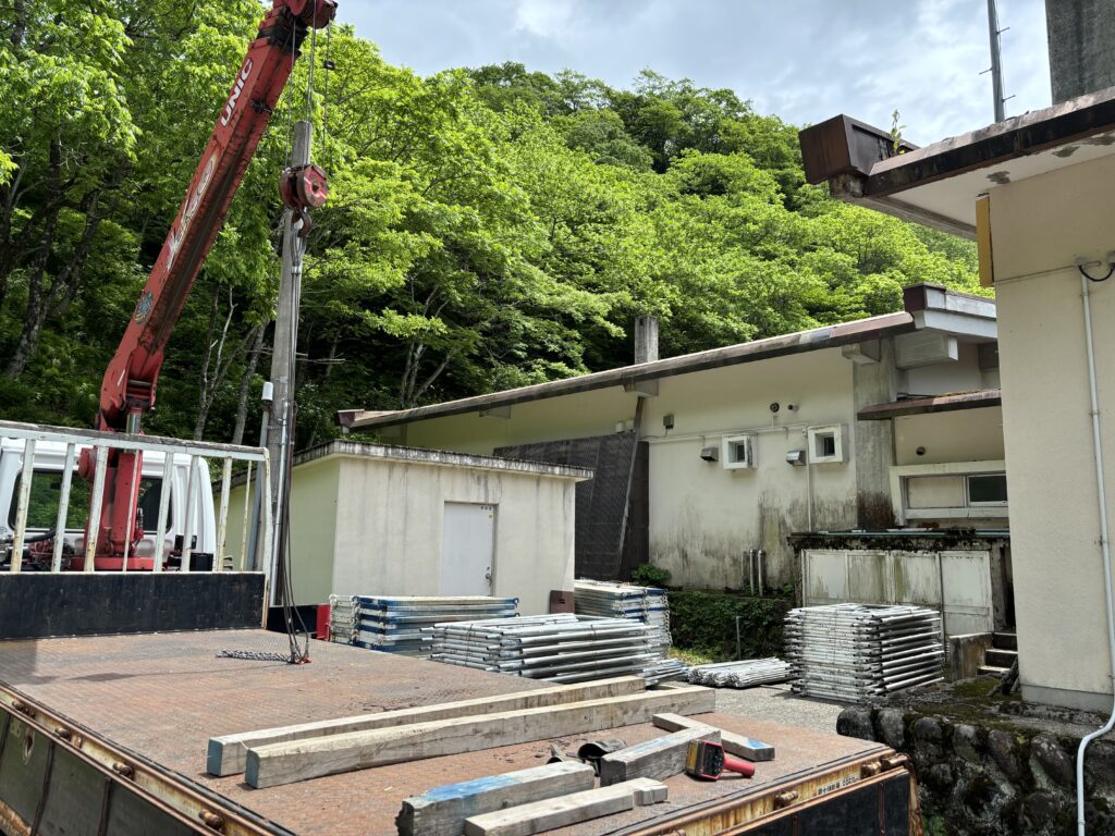 石川県白山市内にて、改修足場組立がスタートいたしました!