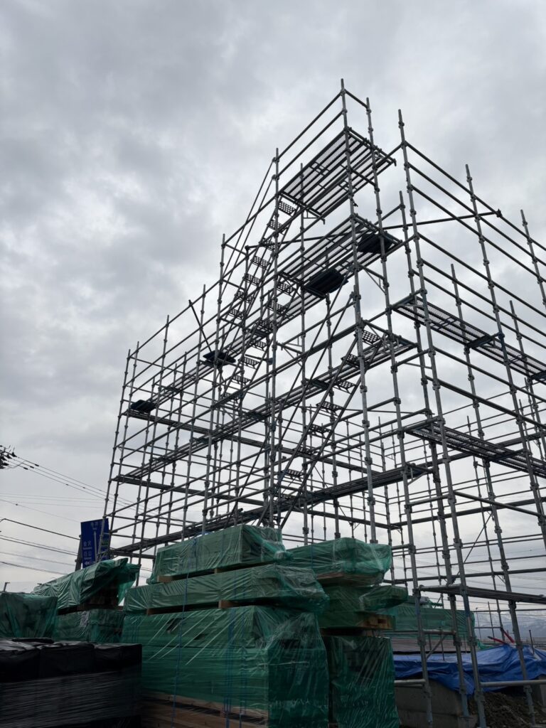 石川県能美市にて新築住宅の先行足場を組立致しました✨