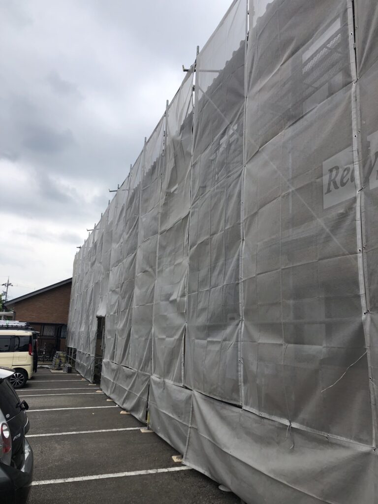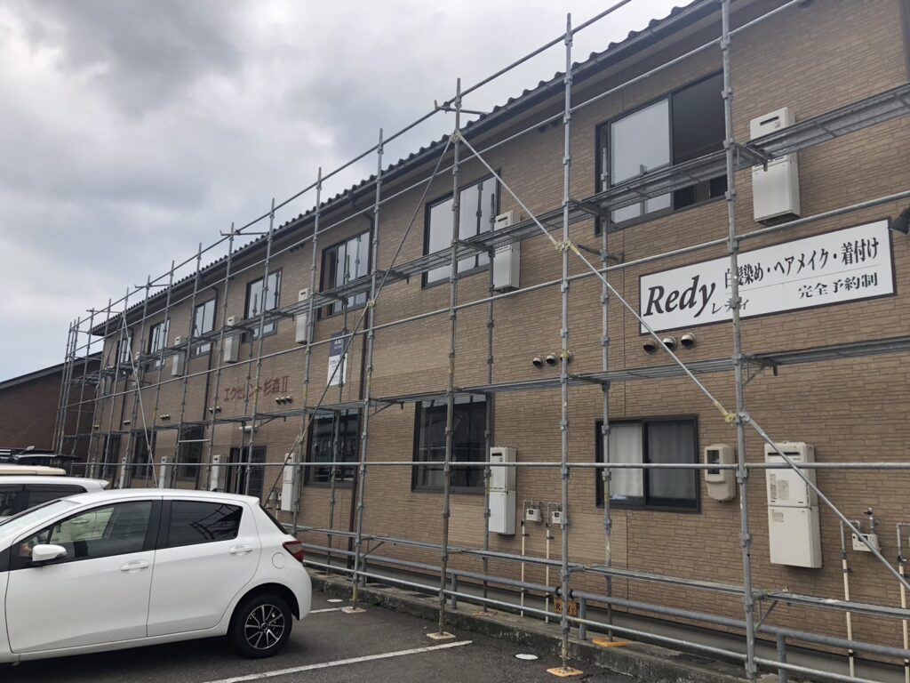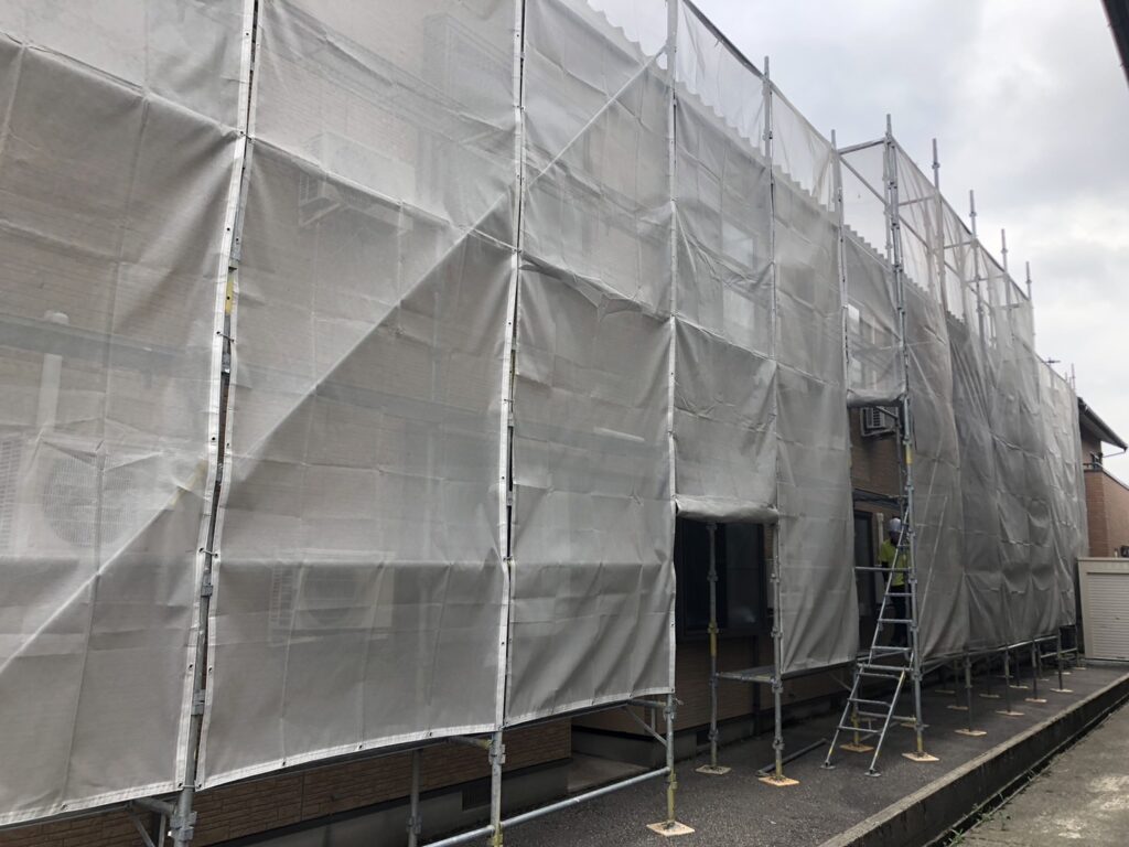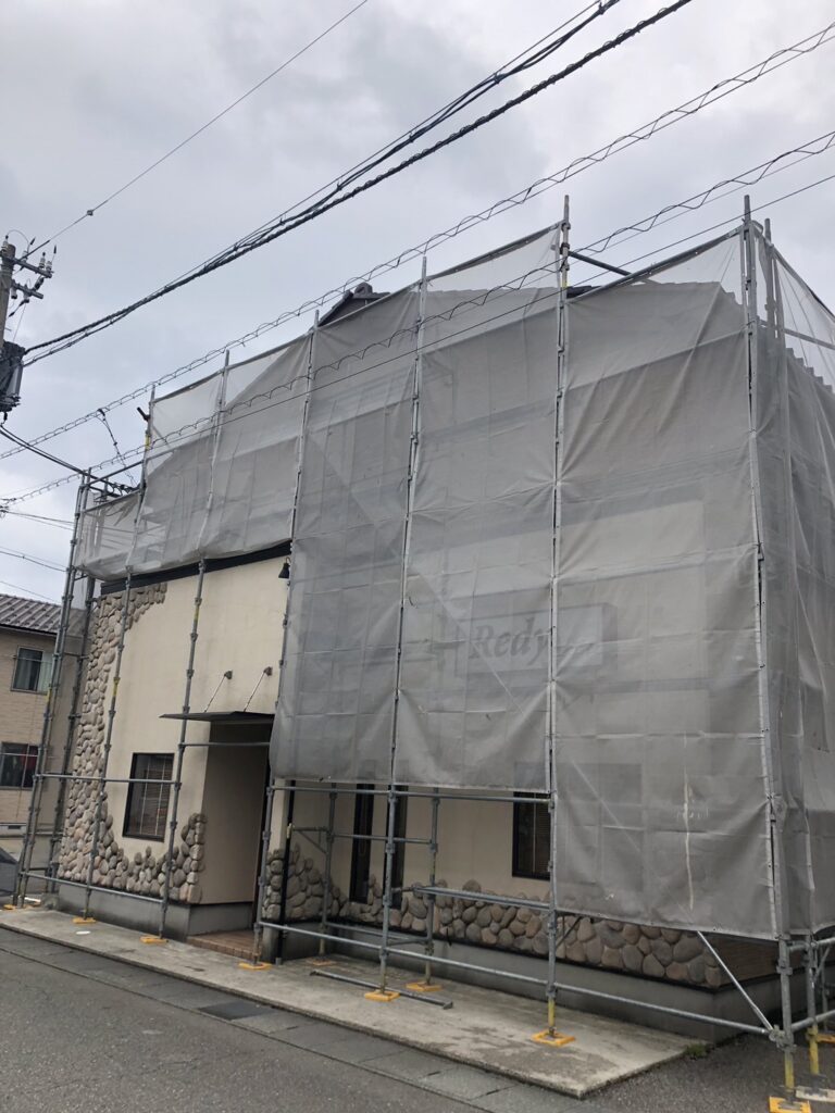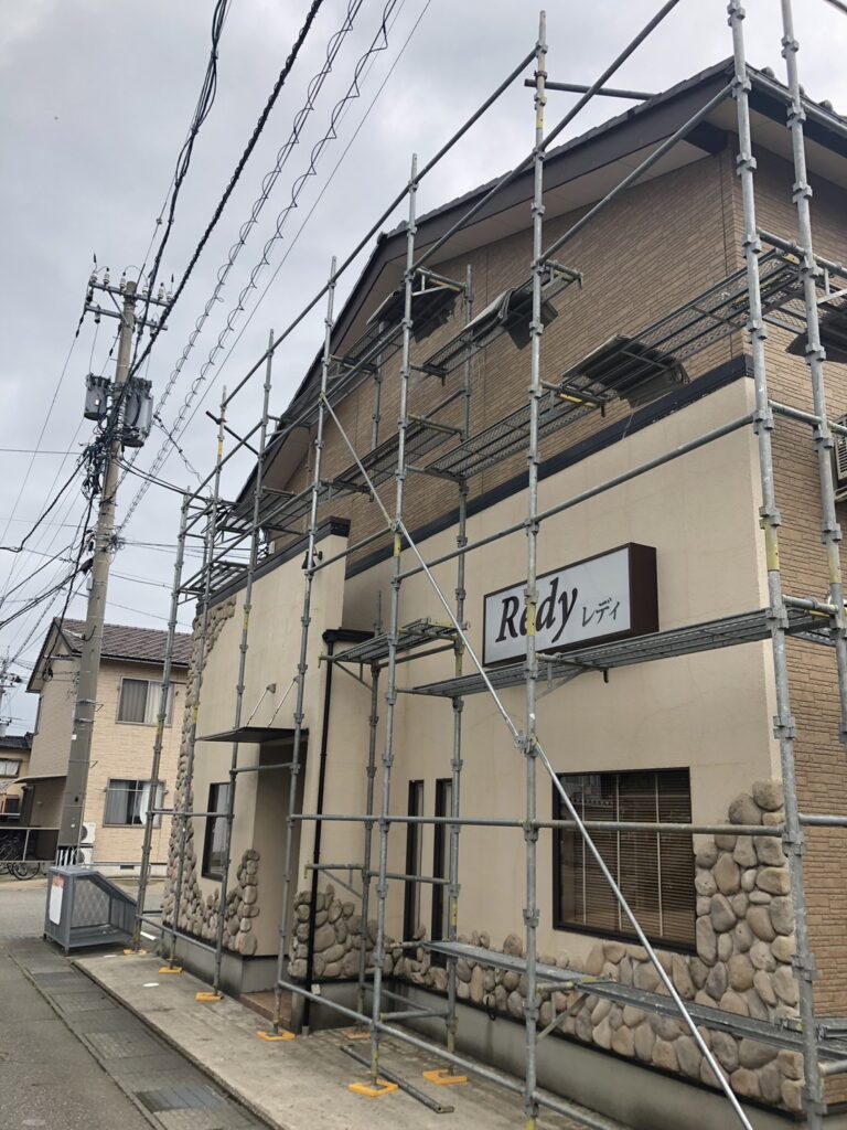 石川県金沢市のアパート外壁改修用足場を組立致しました。