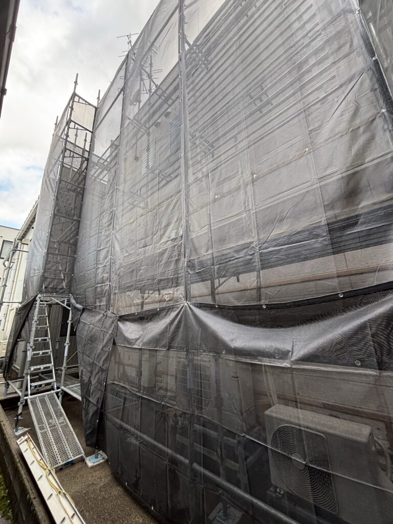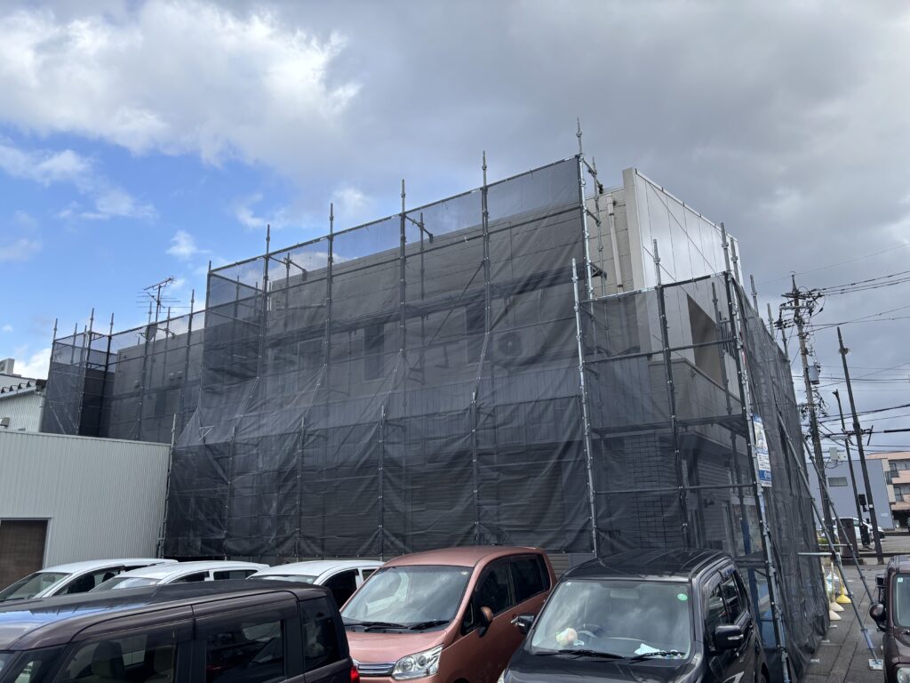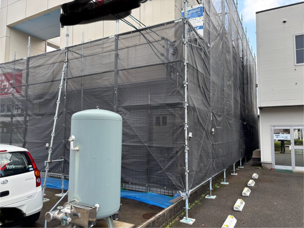 石川県金沢市内店舗様にて、外壁改修足場を組立致しました🔨