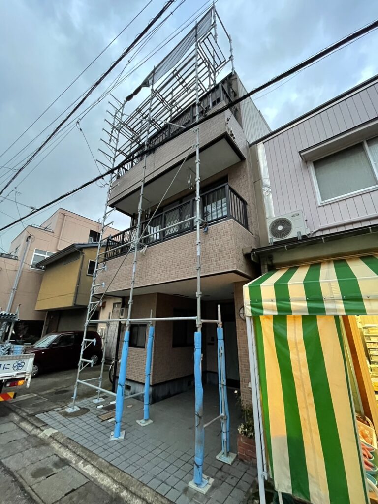 石川県金沢市内住宅にて、屋根工事用の足場を組立致しました✨