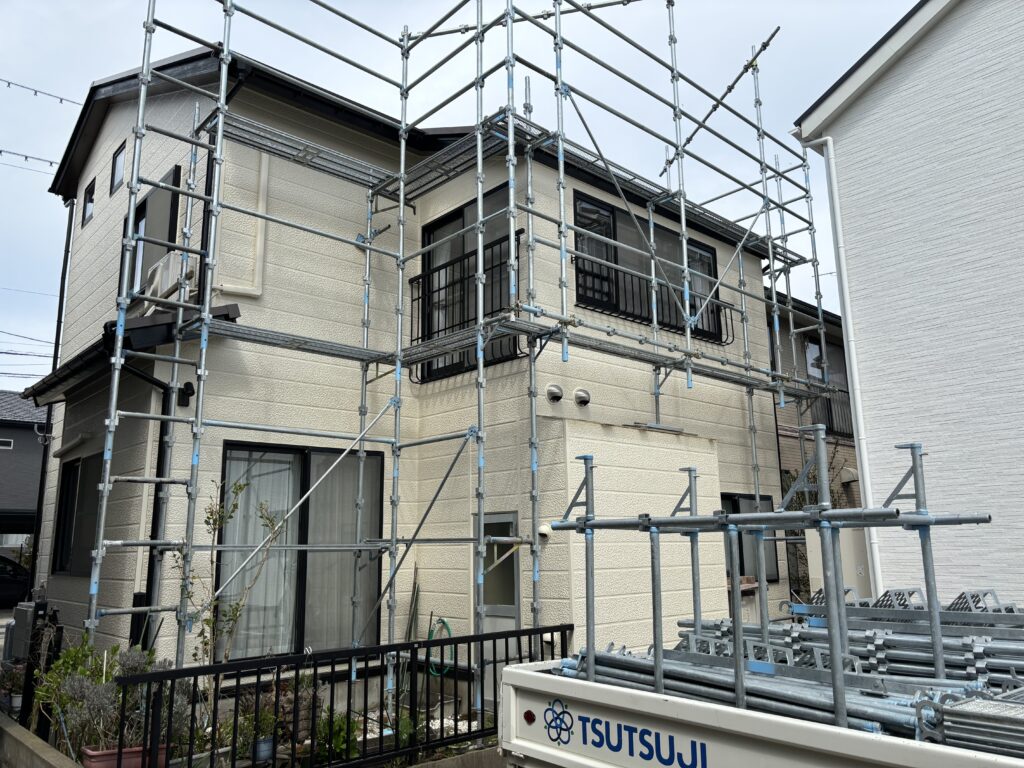 敷地が狭く、足場を組立するスペースが少なかったですが、無事組立できました。