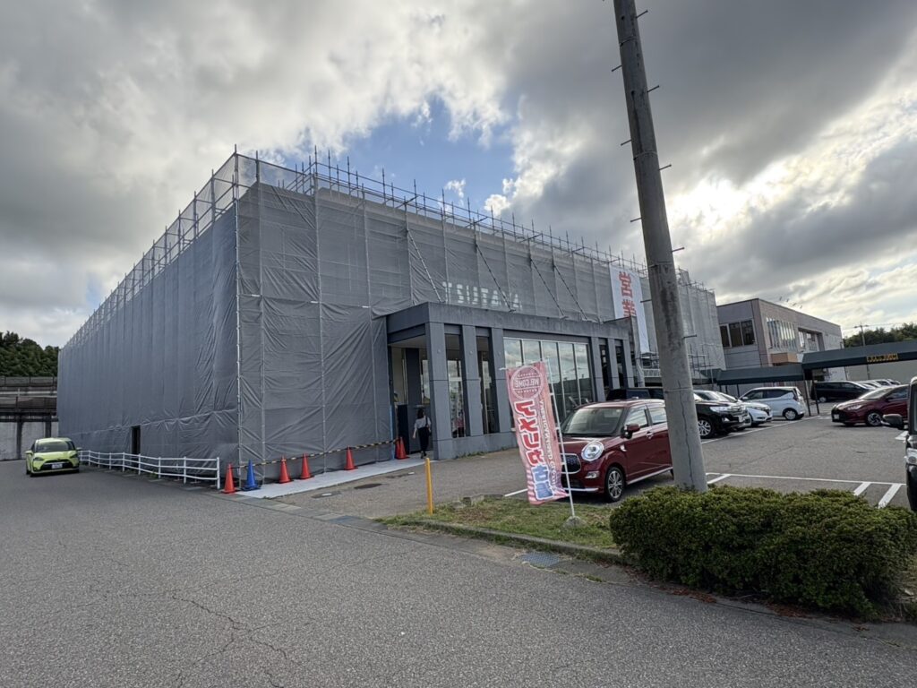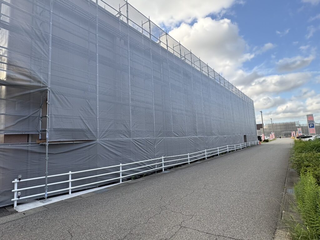 石川県金沢市内店舗様にて、改修足場組立の継続作業を行いました!