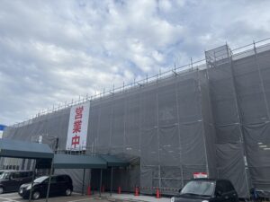 工事期間中も店舗様に変わりなく営業してもらい、お客様にも快適にご利用していただけるお手伝いを足場で行いました!
