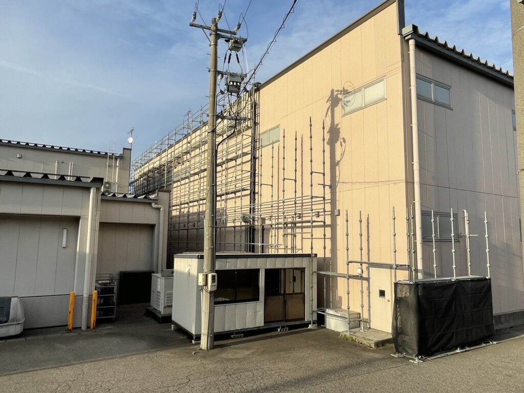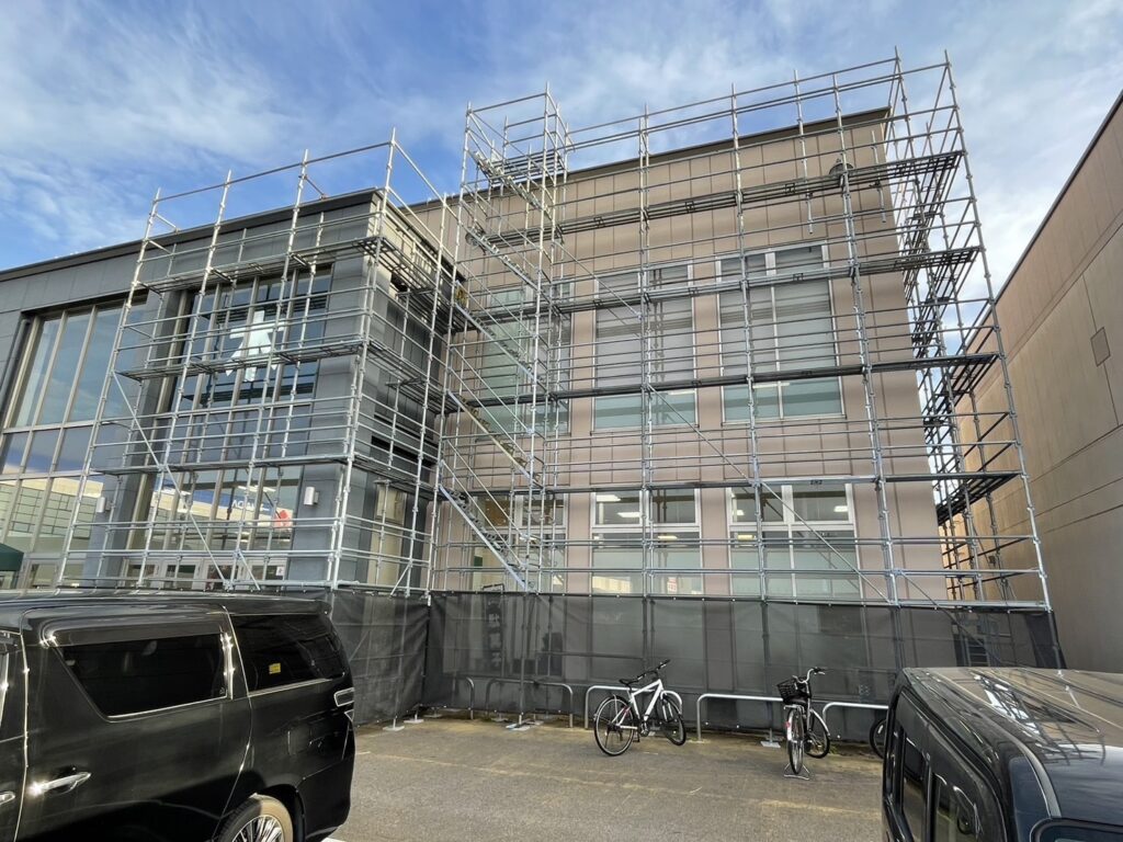 石川県金沢市にて、店舗改修足場の組立がスタートしました‼️