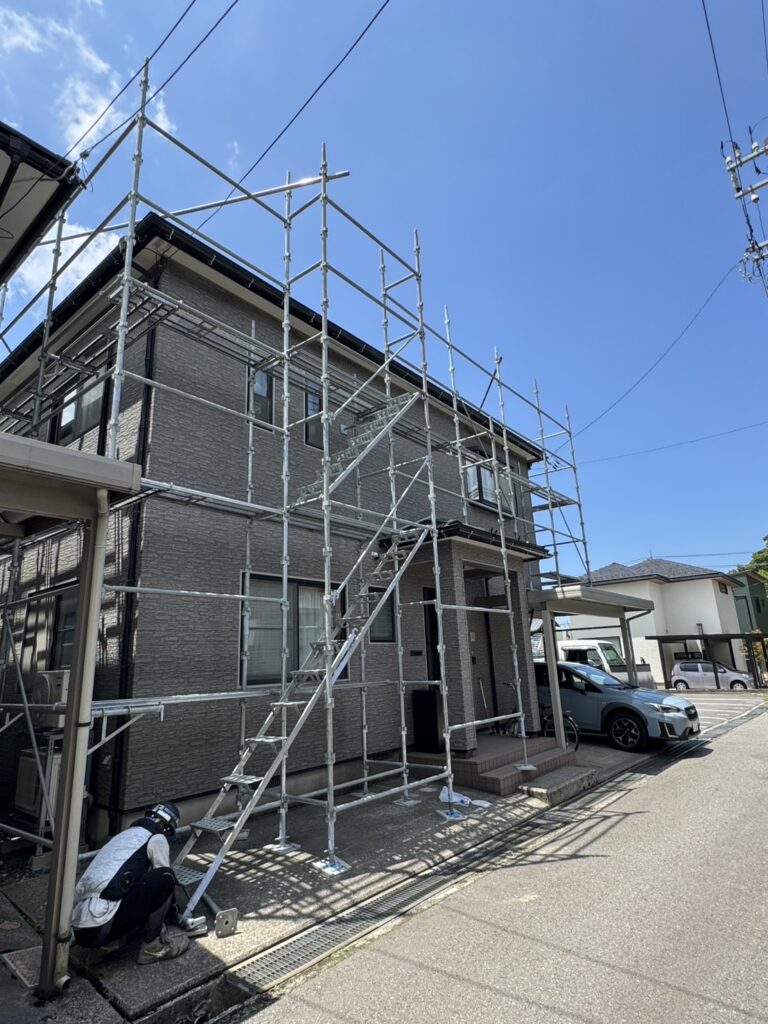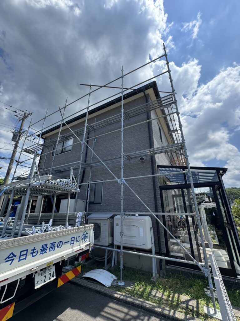 石川県金沢市市内住宅にて、雨樋交換用足場を組立致しました。