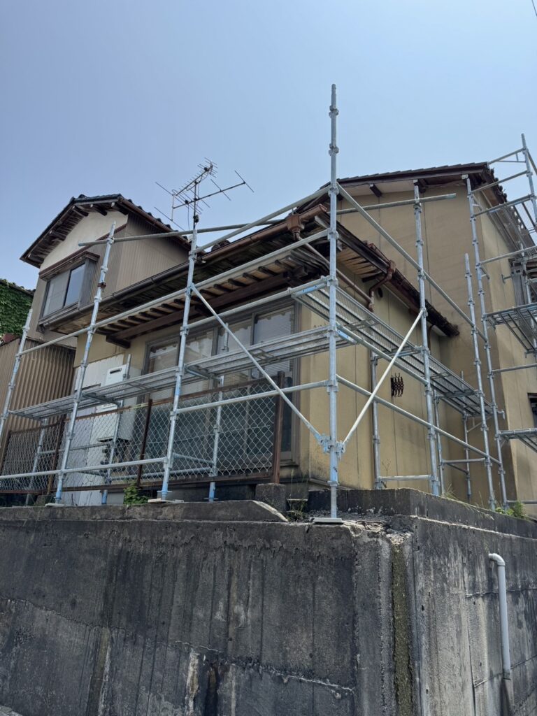 皆さま、お世話になっております。石川県金沢市にて、雨樋取り替え用足場を組立致しました✨敷地が狭く障害物が多々ありましたが、やらずと火打ちで足場の控えをとり、安全な足場をご提供致しました&